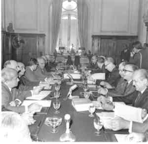 Em seguida, foi lido o texto do Ato Complementar número 38, decretando o recesso do Congresso Nacional por tempo indeterminado.
