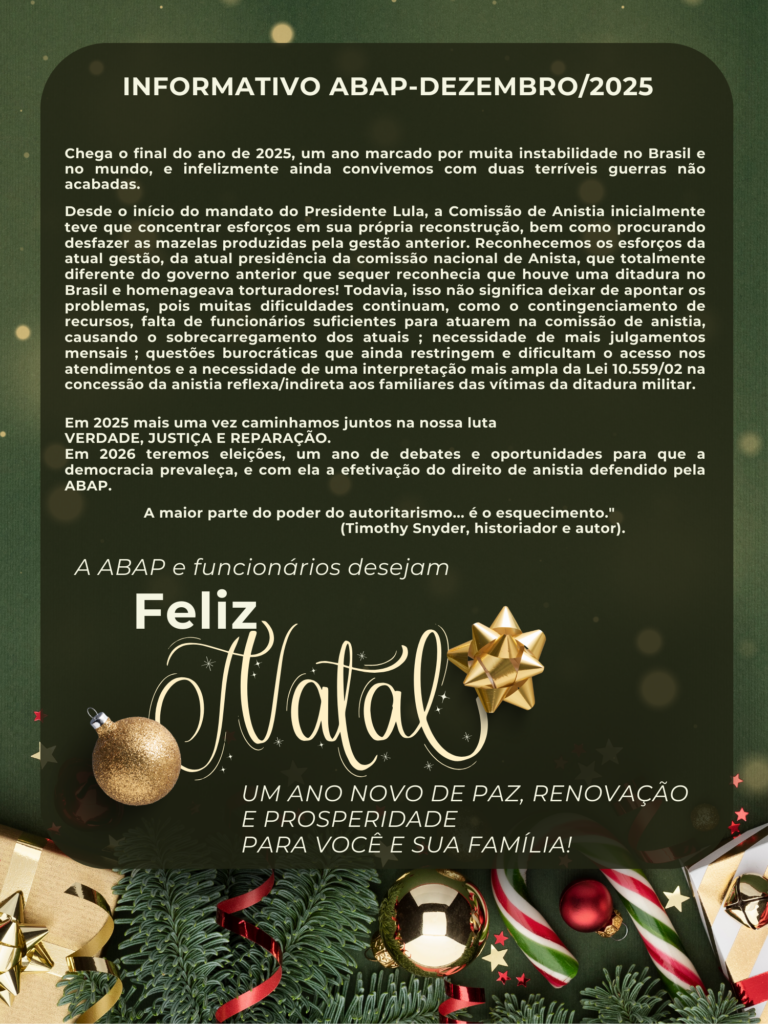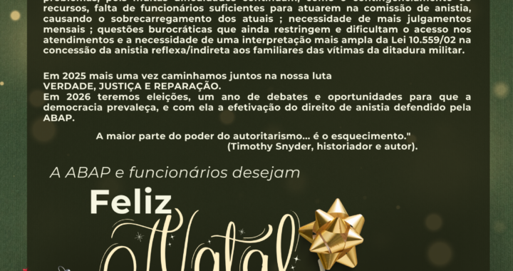 Em 2026 teremos eleições, um ano de debates e oportunidades para que a democracia prevaleça, e com ela a efetivação do direito de anistia defendido pela ABAP.